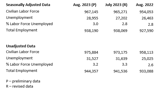 August’s labor force increased by 1,874 people (0.2%) to 967,145.