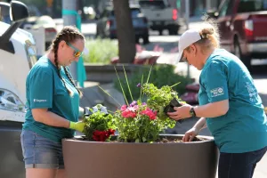 If you’re out-and-about right now, you may see teams of people wearing light blue shirts. That’s Twin County United Way volunteers. They’re spending the day sprucing up parts of the LC Valley. They started off at the Lewiston Community Center, and headed in every direction from there. They planted flowers in pots, laid mulch in garden beds, raked leaves in playgrounds, and even worked on books at the Asotin County Library.