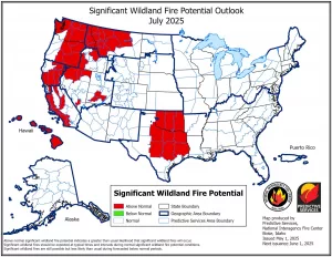 May is Wildfire Awareness Month, and while May predictions are normal for our area, June’s not looking as good. The National Interagency Fire Center predicts an above-average wildfire potential for June, July, and August. By August, even traditionally-wet western Washington and Oregon are above-average for wildfire potential.