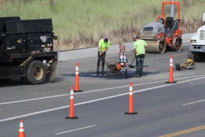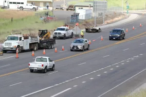 Cones went up earlier this week on Fleshman Way near the Southway Bridge for road work. A fiber line was cut and had to be repaired. The process required cutting asphalt and blocking traffic. The off-ramp to the roundabout to Clarkston and Asotin is still open, but Fleshman Way is down to one lane.