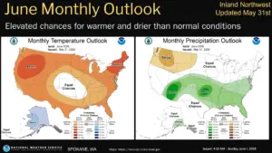 Above average heat and below average rain predicted for our area. The National Weather Service sent out their expectations and their forecasters expect it to be hotter and drier than most Junes.