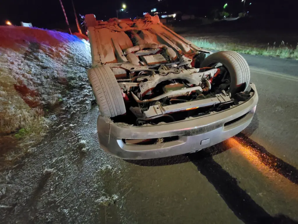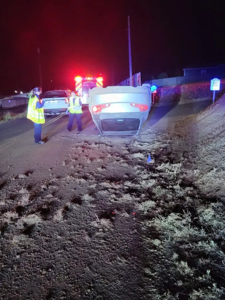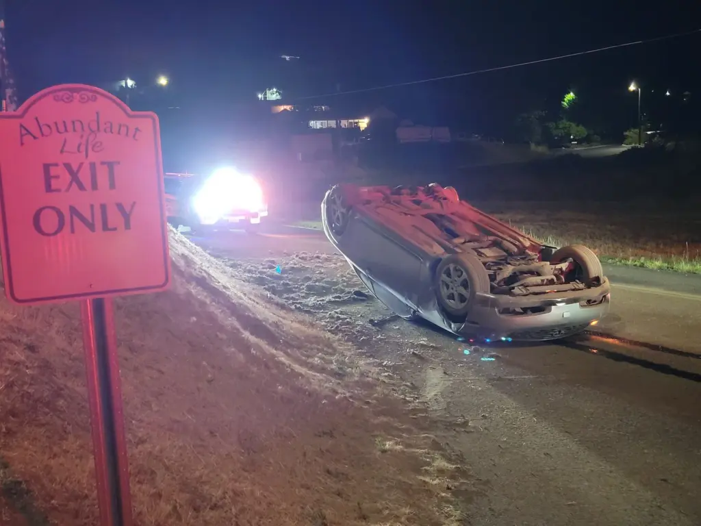 A release from the Asotin County Fire District says witnesses reported a driver was trying to flee deputies, when the car left the road, went up an embankment and rolled onto its top.