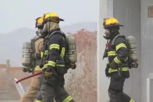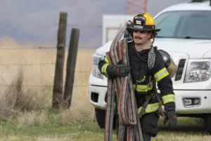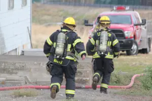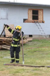Lewiston, Clarkston, and Asotin County firefighters were there this morning with some slight smoke in the building. They’re burning pallets and straw inside to simulate the conditions of a fire. Like many buildings in the valley, it has a basement, so firefighters are using that in their training as well. Starting Thursday, they’ll begin cutting holes in the roof and interior to simulate having to access difficult areas among other things.