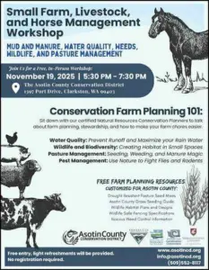 The workshops are at the Asotin County Conservation District at 1397 Port Drive in Clarkston. You do not need to register ahead. For more info, you can go to asotincd.org.