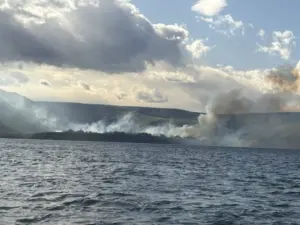 Firefighters rushed to a blaze on the Snake River, just west of Central Ferry. It happened on the Garfield County side just before 3pm yesterday (Mon). Firefighters from Asotin County Fire headed out to help and took their boat because that was the only way to get a fire crew to the location.