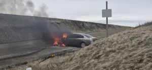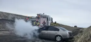 A team of firefighters and law enforcement put out a car fire on Highway 95 yesterday (Tues) afternoon. At 2:46 the Winchester Volunteer Fire, Winchester Quick Response Unit, Craigmont Fire, Lewis County Sheriff’s Office, and the Idaho State Police responded to a car fire at Highway 95 and Talmacks Road. A social media post says they arrived to find a Mazda with flames showing and heavy black smoke. The single occupant was able to get the car pulled over and get out. No one was hurt.