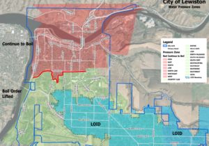 The attached map highlights three separate sections of the community. The section in red shows the area that should continue following the boil water alert order; the section in green shows the area that has been lifted; the section in blue shows the Lewiston Orchards Irrigation District area, which is not affected.
