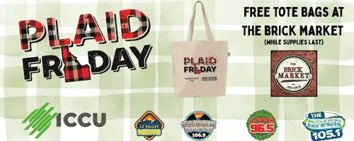 Brick Market—Several local vendors inside! Friday starting at 9am stop in and get the official free Plaid Friday tote bag while supplies last, thanks to Team BMC Silvercreek Realty Group