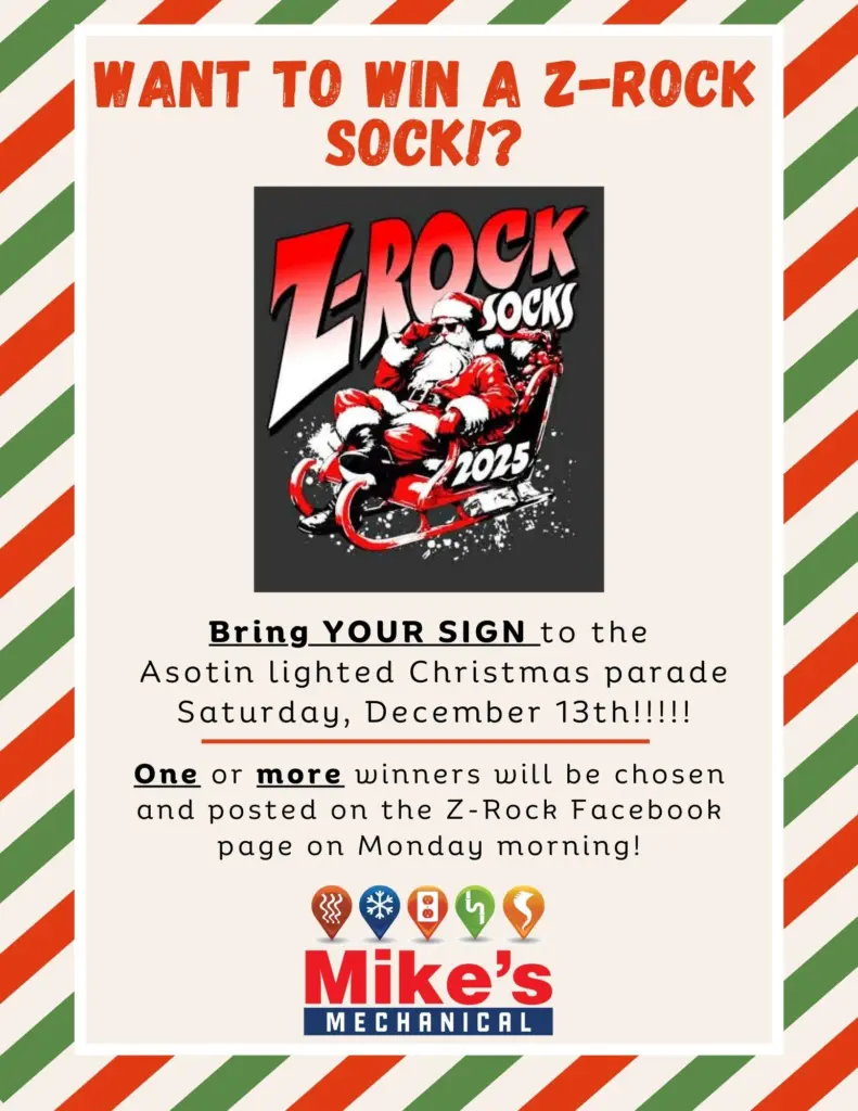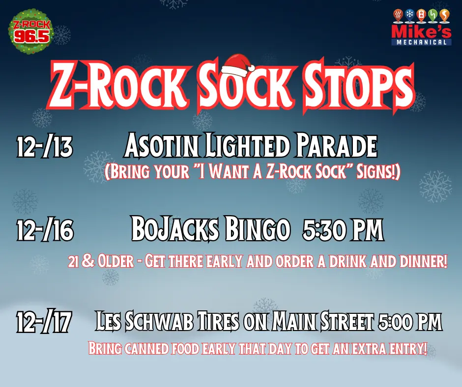 Everyone who wins a “Sock” will be entered in a random drawing for a Z-Rock Christmas Bonus prize.